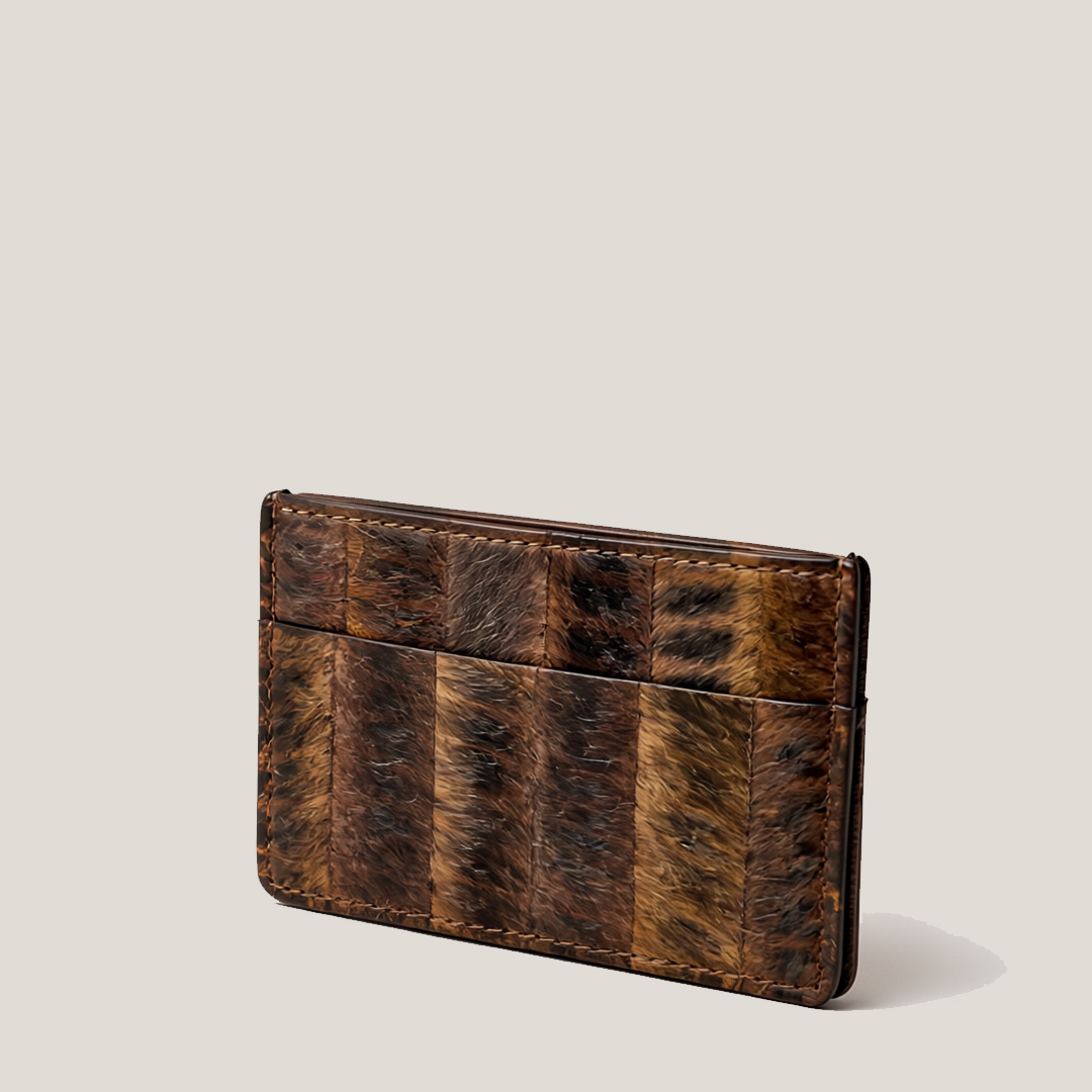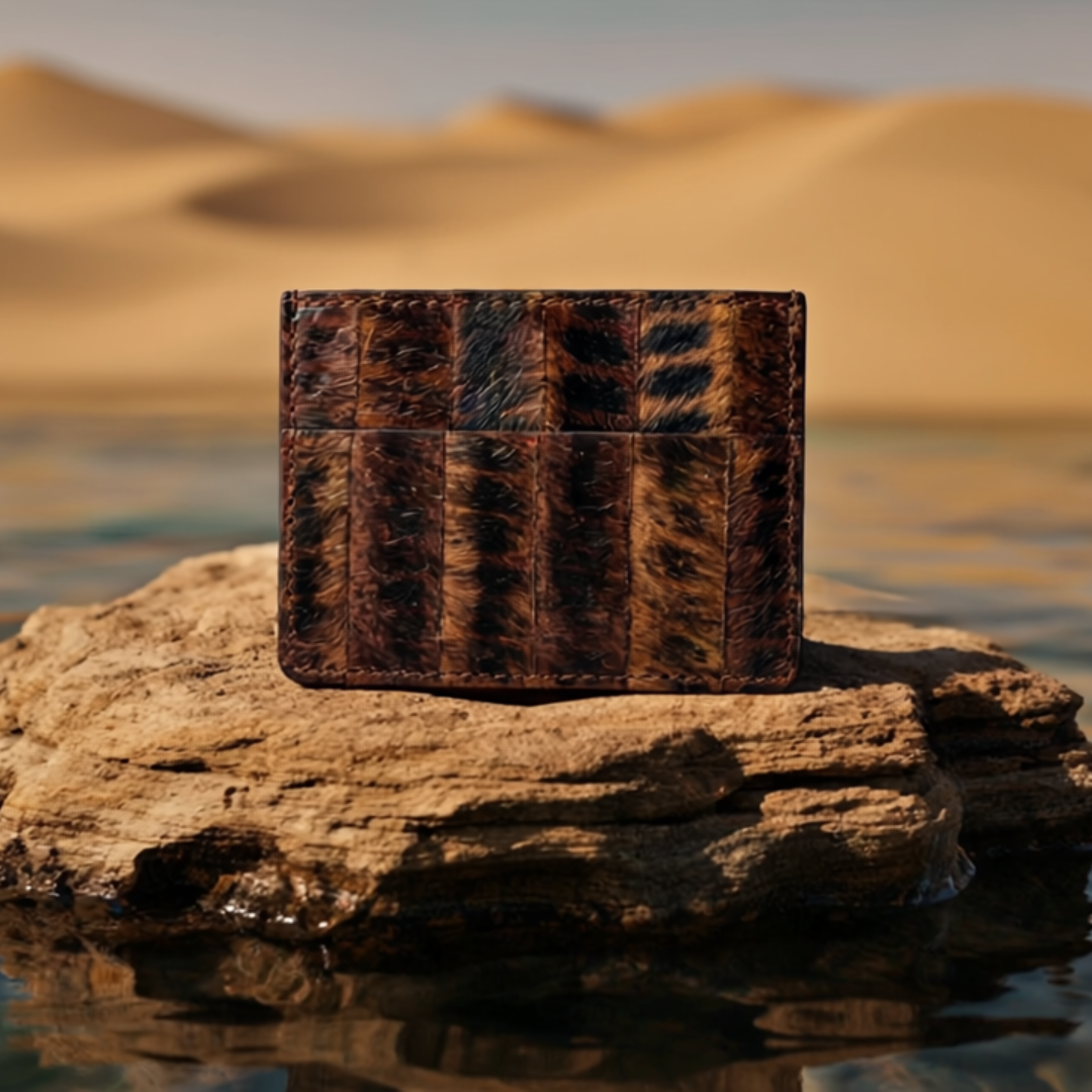This card holder is crafted from Leukeather, a plant-based luxury material developed from the desert’s unique flora. No two wallets are ever the same. Each piece features its own patterns, textures, and tonal variations, shaped by the elements and enhanced through science. Its slim, refined silhouette is designed to slip effortlessly into a pocket while holding daily essentials with ease.
