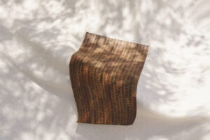 Leukeather can also be developed in a wide range of colours; however, this story focuses on the original raw material, where the natural tones remain untouched. In this format, we do not interfere with the colour of nature, allowing the material’s organic character to define its aesthetic. Our colour applications will be explored in a separate story. Across all variations, Leukeather is available in two formats: flexible (with fabric backing) and static (with wood backing), offering consistency in performance across different design applications.