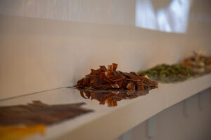 Through modularly cut flora, Leukeather introduces a system that can be arranged into multiple geometric patterns, ranging from linear compositions to intricate mosaics. Developed in the UAE, the material provides a customisable and eco-friendly exotic leather alternative without compromising craftsmanship or luxury.